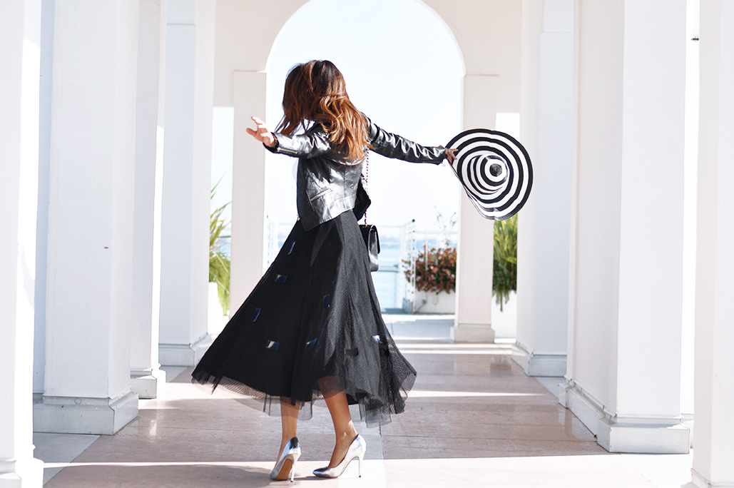 Buongiorno Zagulini, mentre sono in giro per il mondo, precisamente a Cannes, vi racconto uno dei miei outfit sfoggiato durante il weekend da #jwmvenice. Premetto che nel contesto in cui mi trovavo, tutto era bellissimo, per la luce, colore e atmosfera…Tanto mi sentivo bene e rilassata che ho voluto mettere una gonna tutta nera di tulle…della mia amata Maria Grazia Severi. Brand che adoro, sono praticamente innamorata di ogni suo capo… Avete visto la gonna che ho indossato a Parigi ( Basta andare QUI), ecco l’altra che avete visto nel post della mia avventura in questo paradiso (basta cliccare QUI). Il tutto era abbinato al contesto: portici bianchi e la favolosa vista del posto… per questo ho deciso di scegliere il nero e il bianco con un cappello che dava il giusto tocco finale… E poi diciamoci la verità, il mio nuovo look hair – che mi ha fatto il mitico Davide di Andena – mi dona proprio uno stile ricercato e sofisticato no?!?! Allora che ne dite di questo outfit?Vi piace la meravigliosa gonna? Senza parlare di tutta la location…