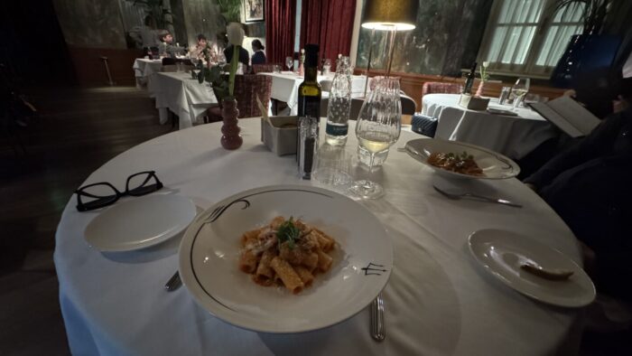 Ma non solo pesce: il menù include anche secondi piatti di carne, come la classica cotoletta alla milanese o le scaloppine al limone, piatti che rispecchiano la tradizione italiana con un tocco personale dello chef. Inoltre, la pasta fresca e il pane, realizzati in casa, completano l’offerta culinaria con un’autenticità senza pari.