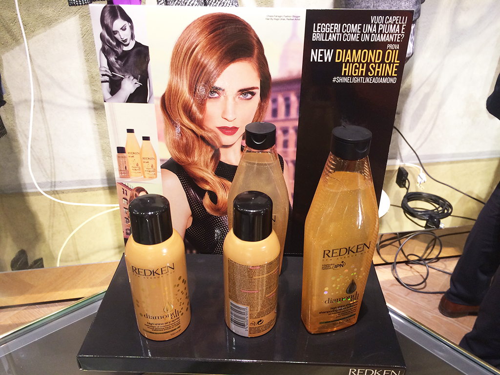 IT Buongiorno mie care! ‘Match your Mood’ è l’esclusivo evento a cui ho partecipato presso il Flagship Store di iBlues (in corso Vittorio Emanuele angolo Piazza Liberty a Milano) in collaborazione con Redken. Ora vi spiego nel dettaglio! Il 4 e l’11 dicembre se vi recate nel negozio iBlues potrete scegliere il vostro colore preferito di Color Rebel e abbinarlo ad un abito iBlues della collezione autunno/inverno 2014/2015! Color Rebel è una colorazione temporanea a base di acqua per i nostri capelli, ma attenzione! NON è la classica tinta: 5 tonalità sgargianti ed intense, ‘Red’ per la donna passionale, ‘Pink’ per la donna estroversa, ‘Coral’ per la donna ottimista, ‘Purple’ per la donna sognatrice e ‘Yellow’ per la donna allegra. Il packaging è simile ad un pennarello che applicato sulle ciocche dona un colore intenso e vibrante. La vera innovazione è che il colore dura per 3/4 shampoo e poi potrete cambiare il vostro ‘Mood’! E poi… Volete un tocco speciale per il Natale? Una spruzzata di ‘Color Rebel Metallic Gold’ uno spray che veste di micro cristalli dorati la vostra chioma… Io l’adoro! Redken ha organizzato questo evento con iBlues perchè il brand ha come filosofia di mixare abiti femminili e maschili insieme per creare outfit sempre originali e diversi! Per curare al meglio i nostri capelli Redken ci propone poi ‘Diamond Oil’ la collezione di prodotti senza siliconi in olio per rinforzare, donare luminosità e nutrire a fondo la nostra chioma. A nostra disposizione – per la detersione – abbiamo: ‘Diamond Oil shampoo’ con ‘Diamond Oil conditioner’ per capelli normali e ‘Diamond oil enriched care shampoo’ con ‘Diamond oil enriched care conditioner ‘ per capelli spenti e danneggiati. Il prodotto magico è senza dubbio il ‘Diamond Oil deep facets’ un olio che ripara in profondità e rinforza lo stelo del capello. Va applicato e lasciato in posa per 5/15 minuti prima di risciacquare. Nella linea ci sono anche prodotti più specifici e versatili come il ‘Diamond Oil shatterproof shine’ per capelli fini, una miscela di olii in grado di penetrare nei diversi strati dei capelli per dare forza e brillantezza e il ‘Diamond Oil shatterproof shine intense’ per capelli crespi, porosi e grossi. Cosa ne pensate? C’è l’imbarazzo della scelta… Recatevi nel Flagship store di iBlues e giocate con il vostro Mood!