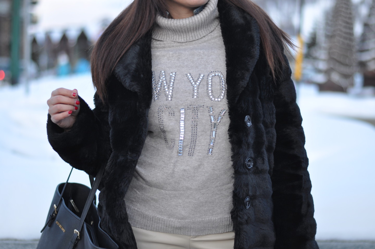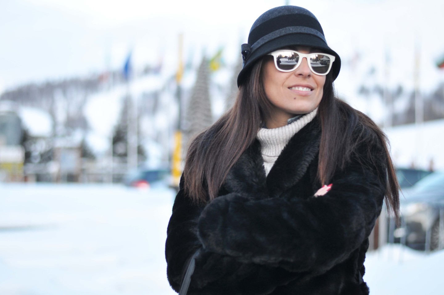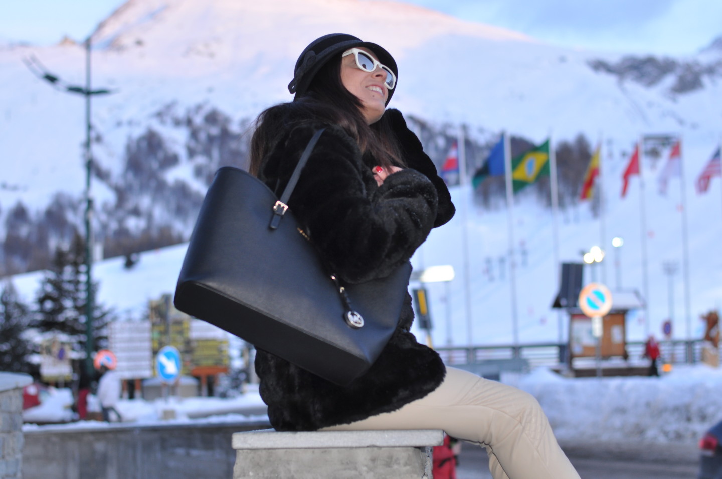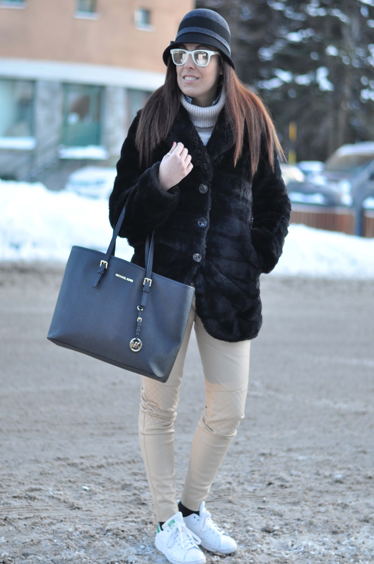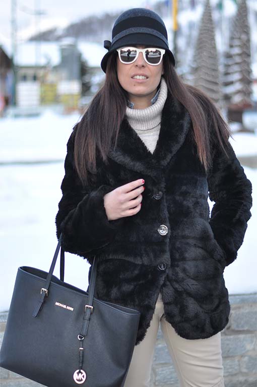 EN Good morning my dear! Here you go the outfit I chose when I’ve been in Sestriere with my Love. It’s glam, fashion, comfortable and very warm… I don’t like to be conventional and most of the women would have chosen to wear a pair of boots or moon boots but I preferred to give an original touch choosing a pair of Sneakers! If you still don’t know their story go HERE and you’ll understand better their versatility. To fight against the cold temperatures of Sestriere an ecological fur jacket and a vintage hat to be a bit ‘bon ton’ as Audrey. The Michael Kors shopping bag completes the look in an elegant without excess way. What do you think? Do you like my grace?