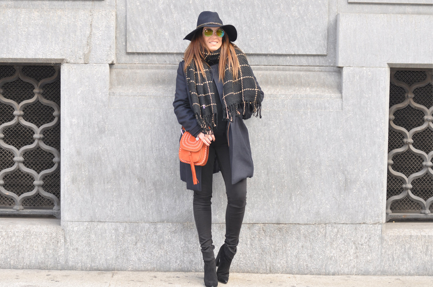 Jeans: Zara | Scarf and Hat: Forever21 | Boots: I Love shoes from Sarenza.it | Coat: Ovs | Bag: Jessica Buurman | Sunglasses: Ray Ban